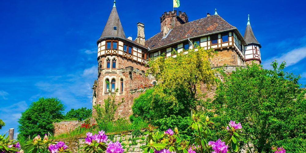 Schloss Berlepsch erhebt sich auf den Anhöhen des Werratals und ist von schönen Wäldern umgeben.